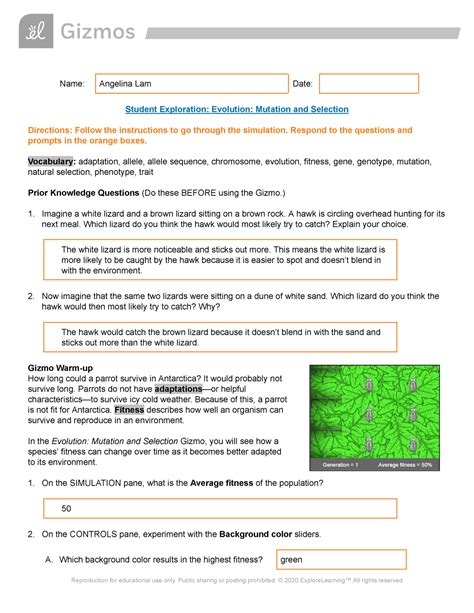 Read Online Evolution Mutation Selection Gizmo Answer Key Epub